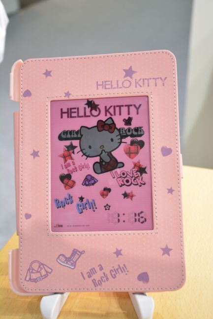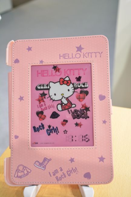 這次在 Computex 中世貿三館就有一個攤位結合了許許多多與 E-Ink 技術結合廠商的作品,其中最引人注意的還是這超可愛 Hello Kitty 的 iPad/ iPhone 保護殼。