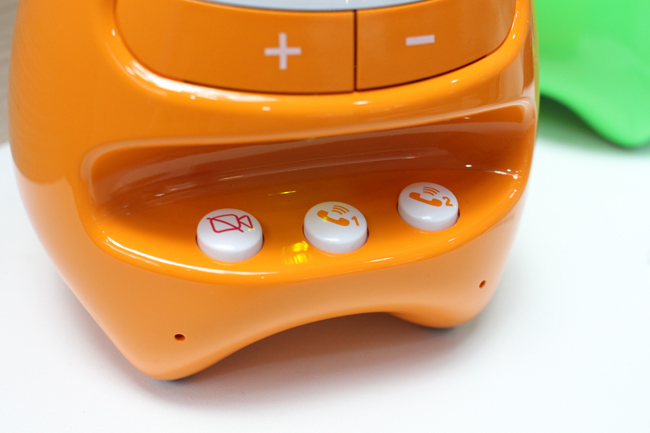下方「嘴巴」的部份有三個按鈕,從左到右分別為視訊開關以及回撥通話案件 1、2,其中回撥的通話按鍵,以小朋友在家的例子來說,電話 1 可以回撥給爸爸,電話 2 可以回撥給媽媽。