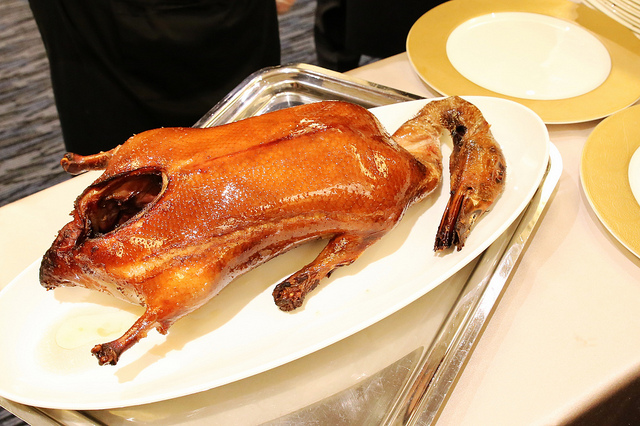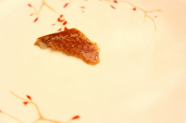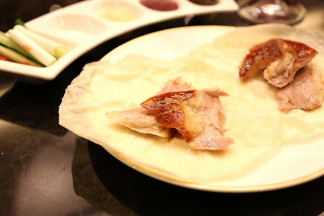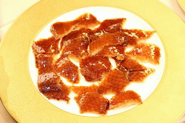 不誇張,片鴨的時候,聽到的是脆脆響的聲音。這最脆的鴨胸皮部分,得要沾著白糖來吃,真沒別的形容詞可以用,入口即化,甜而不膩,看起來很油,吃起來卻香氣四溢。