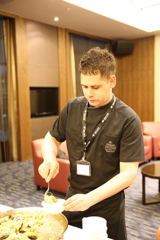 西班牙海鮮燉飯要上桌啦~由我們的帥哥主廚 Burno 為大家服務