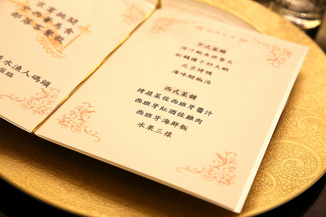 先來看今天的菜單,西班牙料裡的部份有烤蔬菜佐西班牙醬汁、紅酒佐雞肉、西班牙海鮮飯。北京料理的部份則是有撈汁鮑魚拌蜇頭、松鶴樓干炒大蝦、北京烤鴨、海鮮醋椒湯。看來是場龍爭虎鬥啊!