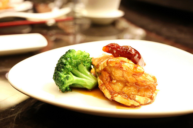 薑是老的辣啊!姜健主廚的松鶴樓干炒大蝦,用上了燈籠椒,微辣帶著點酸鹹甜,非常對味。