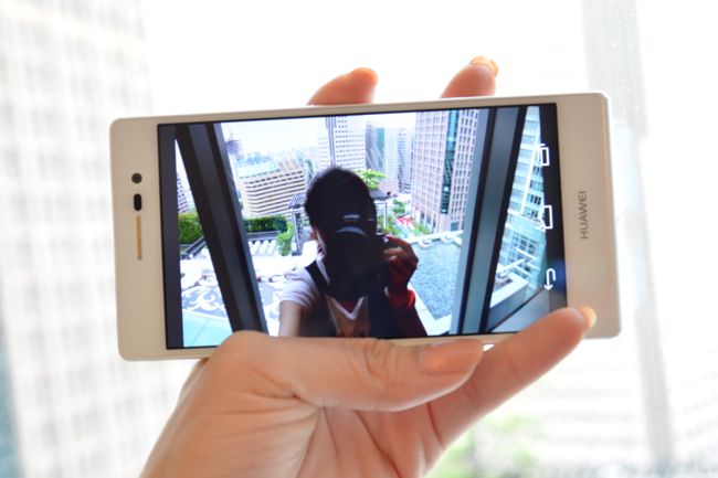 在外形上可以看見那採用七層時尚細膩的鍍膜工藝與玻璃鏡面機身來為 Ascend P7 打造時尚的簡約感。