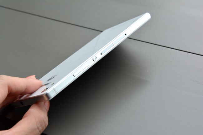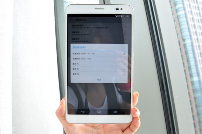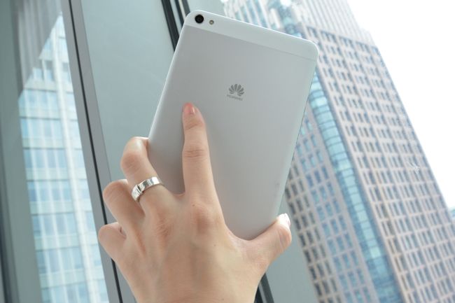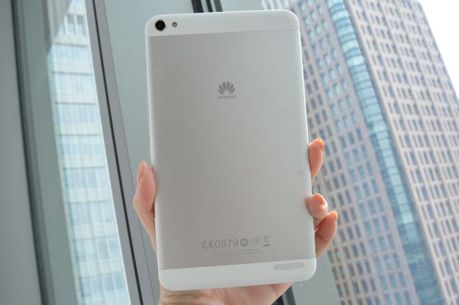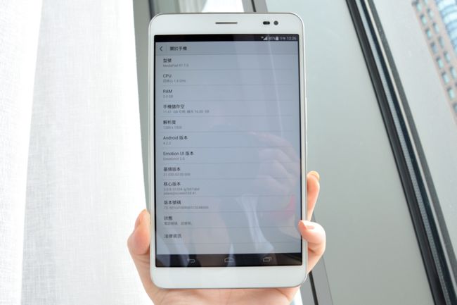 在外形部分與 Ascend P7 不同的地方是設計在背面上下處有著白色的邊條間隔,但那 7 吋的大小拿起來卻是相當順手,同樣支援 4G LTE 900/1800 兩種頻段。