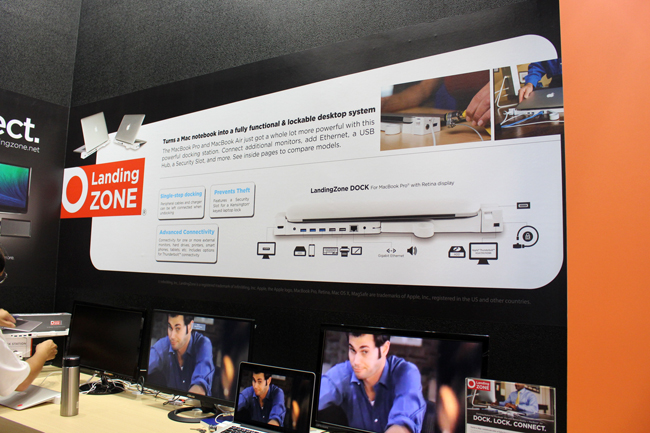 MacBook Pro 版本的 LandingZone Dock 有 HDMI、三個 USB 3.0 接口、兩個 USB 2.0接口、一個RJ45 網路接口、Kensington Security 安全鎖…等設計。