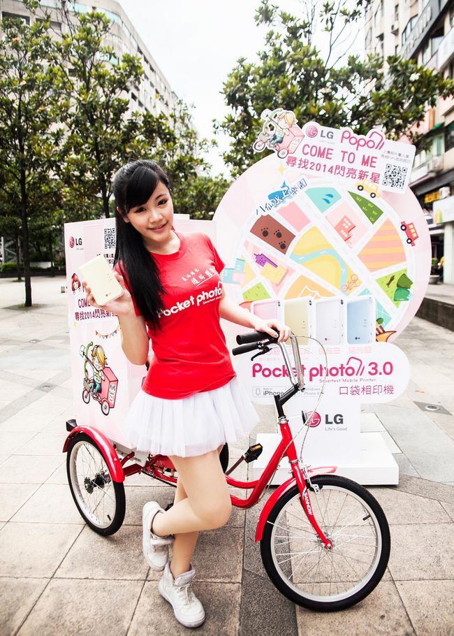 炎炎夏日, LG Pocket photo 3.0口袋相印機陪你開心過暑假,將在六至八月期間,展開一連串體驗活動,於全台北中南舉辦「Popo COME TO ME 尋找2014閃亮新星」巡迴。以創意三輪車的形式,前進各大校園、商圈,發掘2014閃亮新星。讓更多消費者可以親身感受 Pocket photo 3.0「即編」、「即印」、「即貼」、「即分享」的便利性。更有機會獲得LG Pocket photo 3.0乙台(含相紙10張),當月人氣最高者LG更獨家送出Hello Kitty 限量版乙台(含相紙10張)。