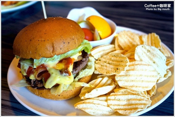 ▼「MAX培根牛肉堡」,他們的漢堡是搭配水果沙拉與薯片,薯片份量也太多惹!!