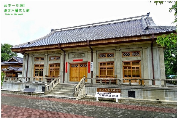 ▼ 「道禾六藝文化館」位於台中市林森路33號,也就是之前的「歷史建築台中刑務所演武場」,興建於昭和12年(1937年),原為日據時代司獄官、警日常演 練柔道、劍道的場所,經多年整修後,日式風格洋溢著典雅的氣息,主場地「惟和館」為「和洋折衝磚造」建築,屋頂採取「入母屋」式寺院形式,吸引許多民眾前 來遊憩、攝影。
