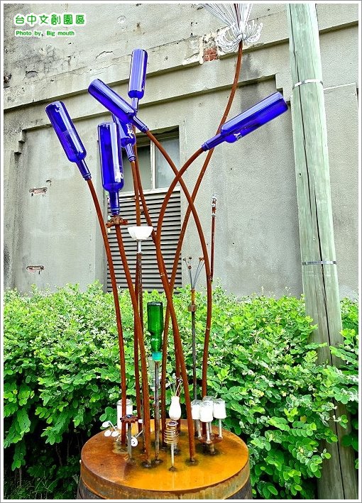 ▼門口有一個台中文創園區酒文化館的裝置藝術,用滿滿酒瓶堆砌而成的,非常有感覺啊!裏頭仍保存大量的工業遺跡及歷史建築,依稀可以看到往日繁華的酒廠榮景。