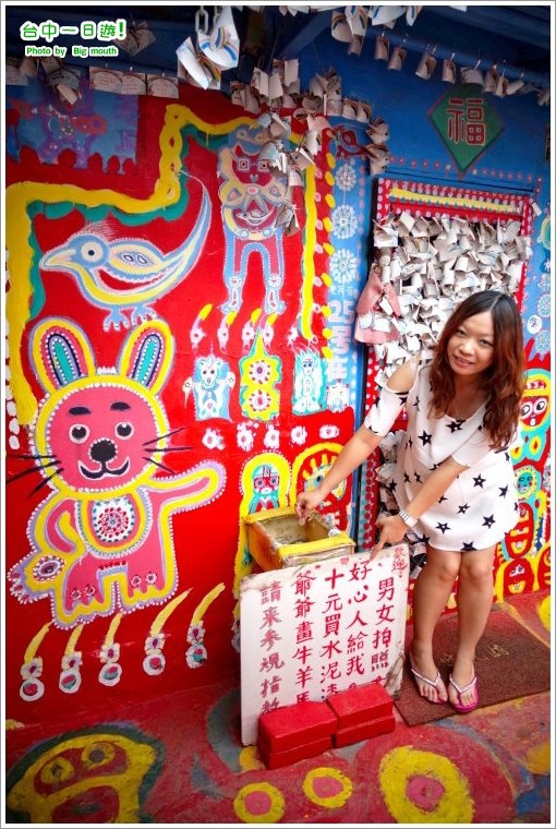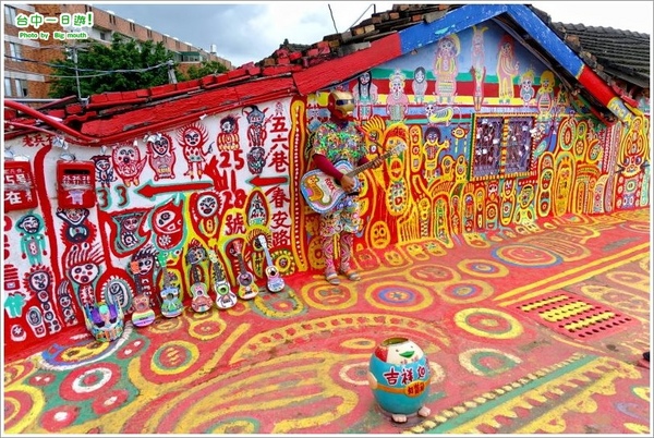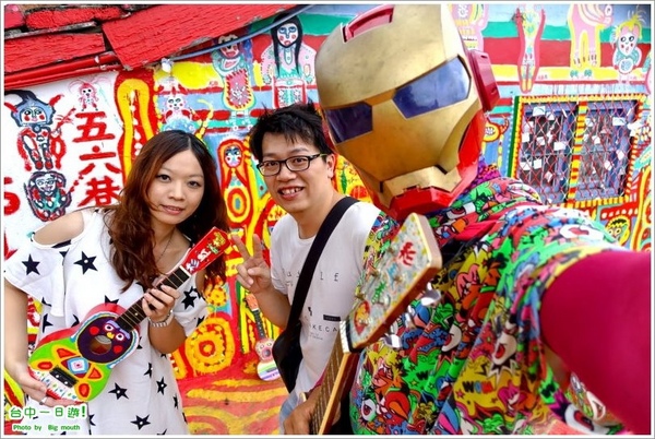 ▼啥?鋼鐵人竟然會動!!原來是「彩虹戰士」啦!原來「彩虹戰士」是蘭嶼達悟族人,初次來到彩虹眷村,被滿滿的彩繪所感動,所以就來這裡自彈自唱,表演給遊客看,還自創彩虹爺爺的主題曲呢!「彩虹戰士」非常好客,一旁的彩繪吉他跟烏克麗麗都可以拿起來合照唷!