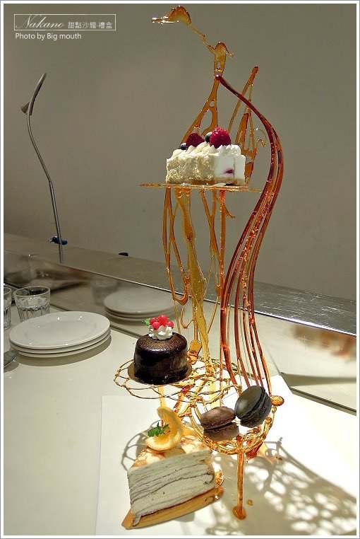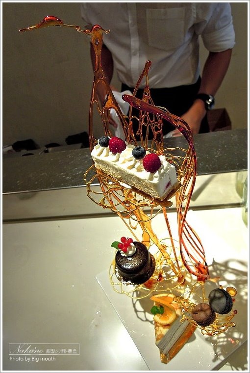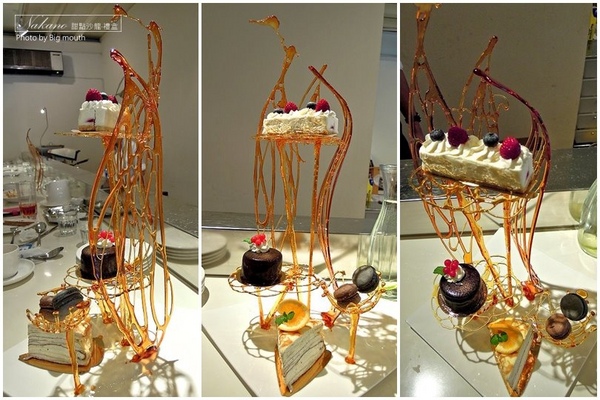 ▼以糖工藝做成糖架的甜點,讓女孩兒狂尖叫啊!糖架上可以放置三個甜點及兩顆馬卡龍,一次可以有視覺及味覺雙重享受,真是太幸福惹!但記得拍照不要拍太久,不然他們的蛋糕會慢慢融化唷!