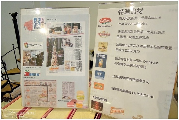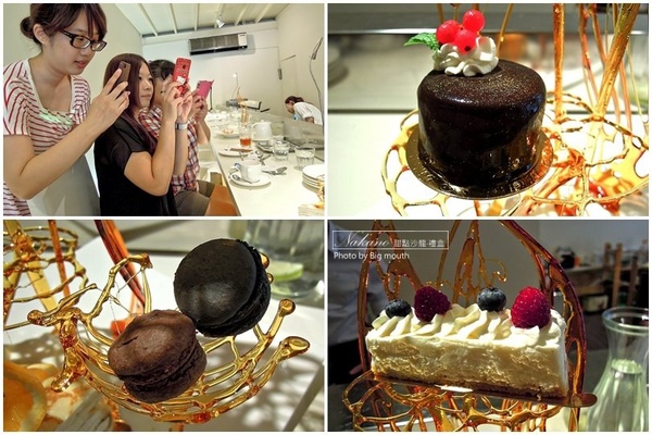 ▼ 看到沒?女孩兒狂拍拍不停,每個角度都要來上好幾張!右上為巧克力蛋糕,像鏡面般的巧克力蛋糕吃起來帶有濃醇的黑巧克力香氣,外面是香濃的巧克力醬,帶有 可可香氣與苦甜的巧克力很對女孩兒的胃;左下為自製馬卡龍,吃起來沒有一般馬卡龍的甜膩,鬆軟口感還蠻好入口,但相較之下還是比蛋糕甜一 些><配茶吃還頗為剛好的!右下為巴伐利亞,這是口咩的最愛惹!吃起來軟綿細緻的蛋糕體上放有莓果,吃起來清爽香甜而不膩口。
