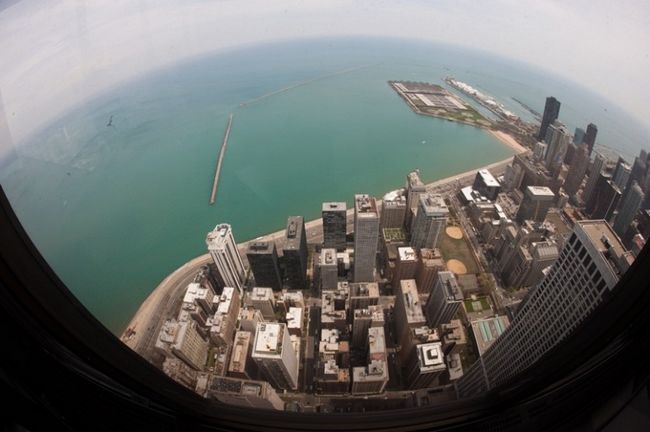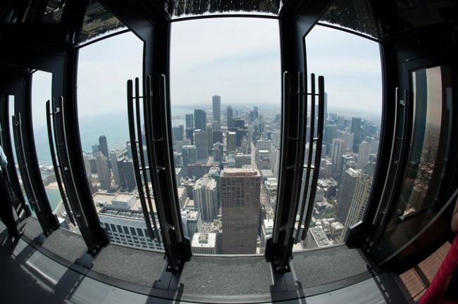 透過平台的密封玻璃,遊客可以飽覽密西根湖的景色、芝加哥的壯麗市景、北密西根大道。