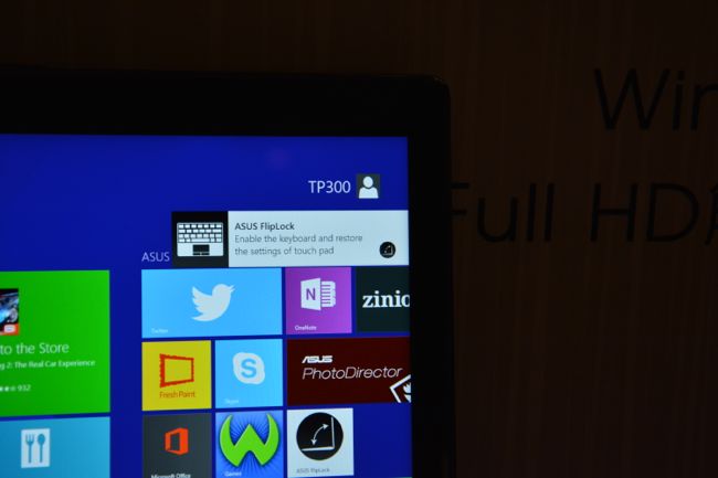 而這次 TP300 與 TP500 皆可以直接翻轉360 度到平板模式,當翻回的時候右上方也會顯示鍵盤功能的自動切換。