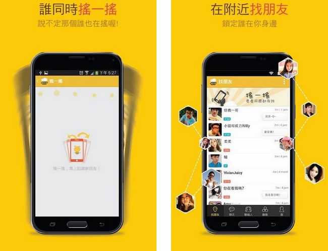 BeeTalk最新奇的就是透過手機定位,BeeTalk的「找朋友」功能可迅速搜尋出附近同樣使用BeeTalk的使用者,即使不敢當面搭訕也能用BeeTalk與對方聊天,踏出交友第一步。此外,使用者只要啟動「搖一搖」的功能,即可找到同時也正在搖出新朋友的使用者,讓交新朋友的速度更加快、狠、準。