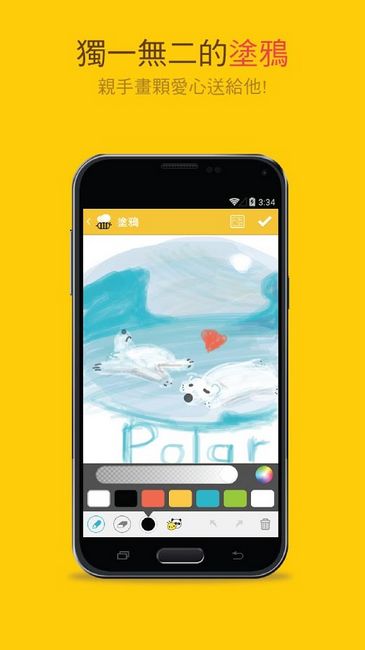 塗鴉功能與主程式結合,使用流程更直覺、便捷。可自行調整線條粗細、色彩配置,搭配照片或貼圖呈現多樣風貌。