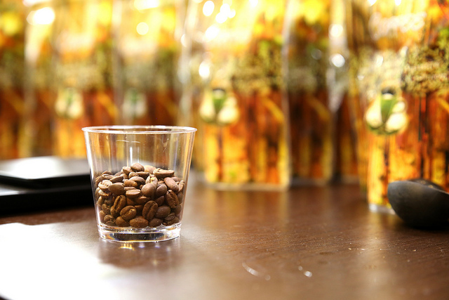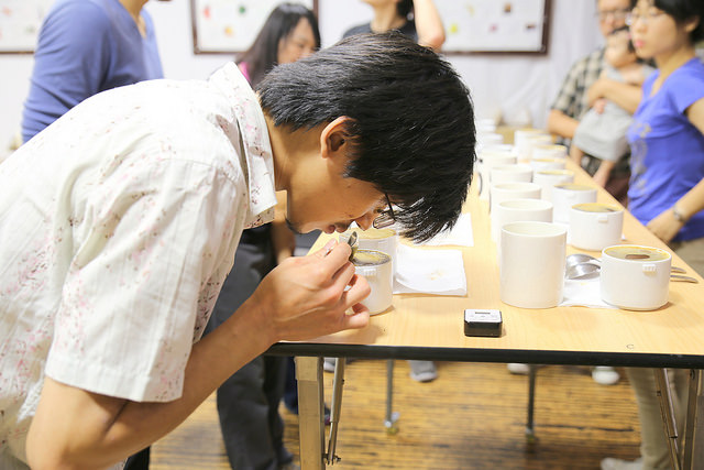 經營「A-plus」精選咖啡生豆貿易的咖啡嗜者黃介吳,這回在台灣咖啡研究室舉辦 BOP 2014 競賽豆杯測品嚐會,不少同業和玩家們都到場參與,因為要一口氣喝到這麼巴拿馬競標批次咖啡,可是非常難得的機會。