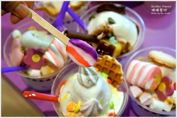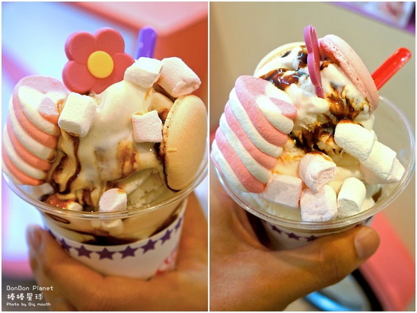 「BonBon」 的法文原意即是「法式小繽紛甜點」的意思,「BonBon Planet棒棒星球」的品牌形象營造成各式有趣新奇的星球故事,各自也有不同的創意冰品,讓人充滿想像之外,還能吃到不一樣的夢幻冰品;「BonBon Planet棒棒星球」冰淇淋價位約從90~150元間,以外帶形式居多,冰淇淋融化速度稍快,千萬不要因為太漂釀就猛拍照,拿到冰淇淋迅速拍幾張後就趕 快吃它吧!主打的「彌賽亞的祕密花園」、「烈日彩虹」與「公主的秘密」都是大口頗喜愛的口味,酸甜中帶點童趣的想像力讓冰淇淋充滿了多彩多姿的夢幻感,女 孩兒看到保證會尖叫加融化!有興趣的捧友們有機會一定要去嚐嚐華麗又繽紛的「BonBon Planet棒棒星球」創意冰淇淋,保證會讓你滿足對童話故事的想像,喚起童趣的心靈,走過路過千萬不要錯過溜!
