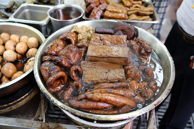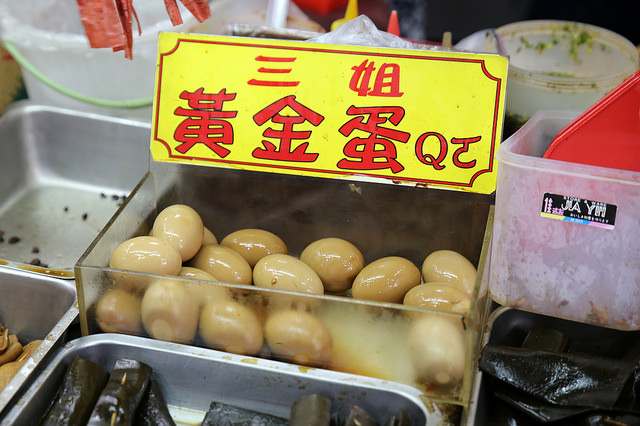 這半熟蛋可不好料理,至少我自己在家想試著做時,連半次都沒成功過。想起頭一回在老阿伯的攤子上看到這【三姐黃金蛋】,我竟然想的是:「這是拿過來寄賣的吧?」就像這次來,排隊人多怕沒有位置,老婆就先帶著女兒去坐下來,我問說要吃什麼,她交代:「都可以,幫我點份豬血糕就好。」排了五分鐘終於輪到我,就直接對負責點單的阿伯覆誦懿旨:「我要一份豬血糕,還有‧‧‧」話還沒說完,老阿伯就大聲的回說:「豬血糕?冇可能!」順便還瞪了我一下,覺得我是來亂的。