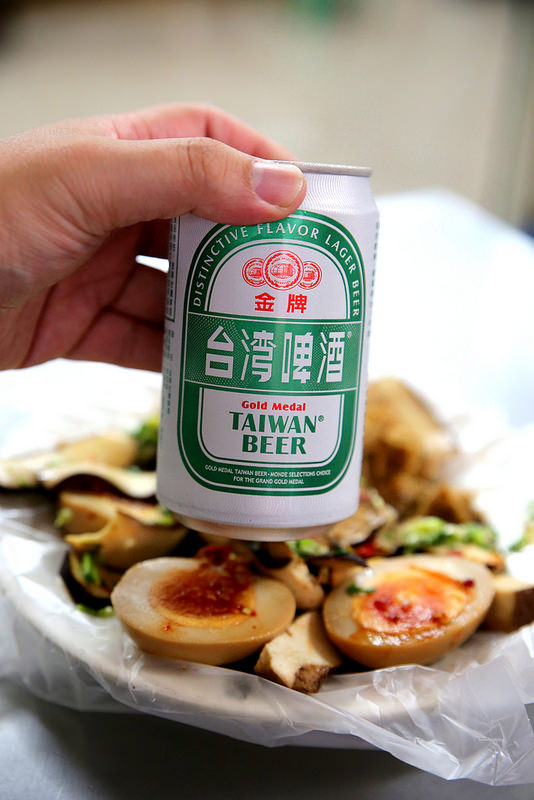 被老阿伯這麼一瞪,我突然就醒了過來,「對吼~這是現滷豆干,不是滷味!」所以在攤子上除了黃金蛋之外,也找不到有肉類製品,素食的朋友可以先告知老闆,應該會有不同的醬料之類的。在點完餐之後,會幫你直接把豆干切好,淋上調味醬汁,灑上蔥末。阿伯還故意笑問:「要加辣嗎?這樣飲料會多喝兩罐。」旁邊有賣自家熬煮的冰仙草茶,看來銷路不錯。