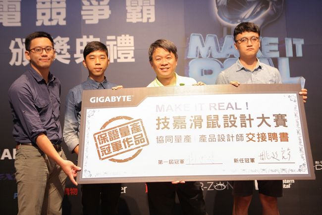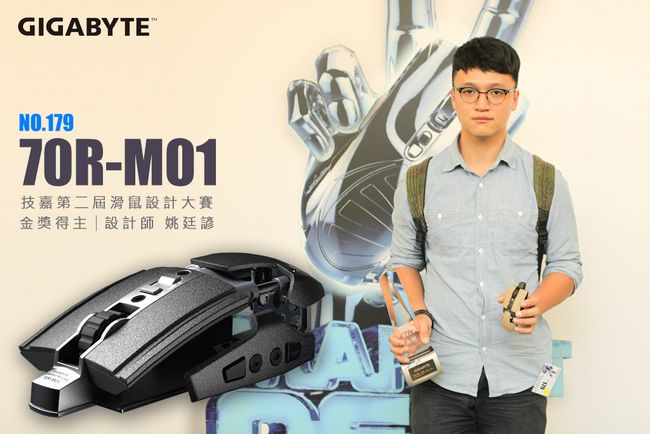 近年來屢獲多項國際產品設計大獎的周邊配備大廠技嘉科技,於今年3月起舉辦「Make It Real! 技嘉第二屆滑鼠設計大賽《電競爭霸》」,就在7月8日進入最終決賽,並立馬於下午進行頒獎典禮。此次大獎由新銳設計師姚廷諺所設計的作品「70R-M01」榮獲,此作品以來福槍為設計概念,濃烈的軍事遊戲風格,獲得評審一致青睞,不僅帶走新台幣15萬元的獎金,技嘉科技更再次「保證量產」此冠軍作品,並協助行銷全世界。銀獎為張俊杰及黃昭凱雙人組所設計的作品「Double Transfer」獲得,主打可隨時因應不同手感需求而調整的滑鼠設計,受到評審的喜愛;銅獎則由張祐豐所設計的「Cobra Man」奪得,以考量散熱與手感的材質應用,獲得評審的好評。