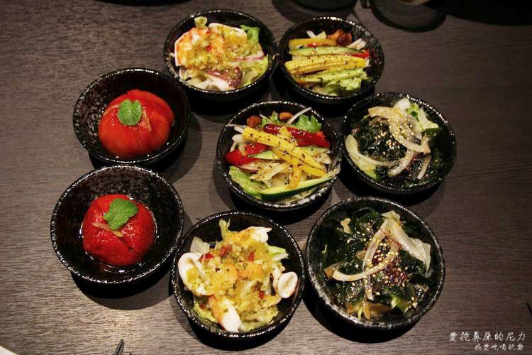 開胃菜-大吟釀番茄、日式海藻豆腐沙拉、日式和風沙拉、泰式酸辣海鮮沙拉