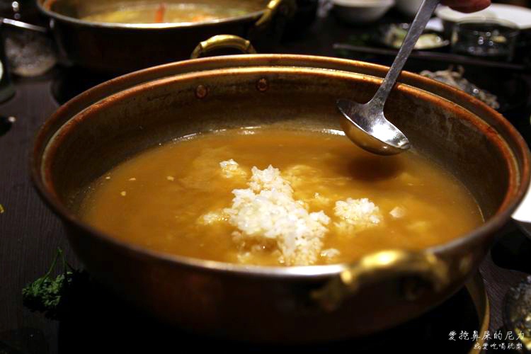 銅花精緻涮涮鍋採用一個要價2萬多塊的銅鍋熬煮火鍋