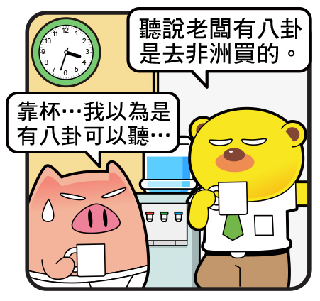 茶水間:有人的地方就有八卦,這在職場是不變的道理,那麼哪裡才是八卦最多的地方呢?當然是茶水間了~這裡是同事們休息喝杯茶小放鬆的地方,這時多半有人會開口找話題聊,聊著聊著就聊開了,這時聽過的風聲在這裡就會變的開始有人加油,有人添醋,然後變成一個八卦懶人包供人放送~