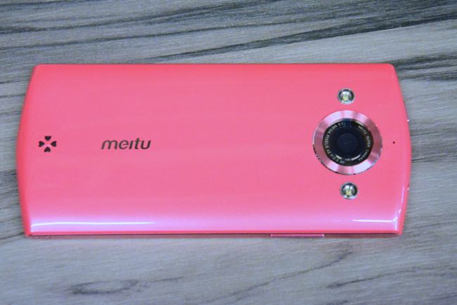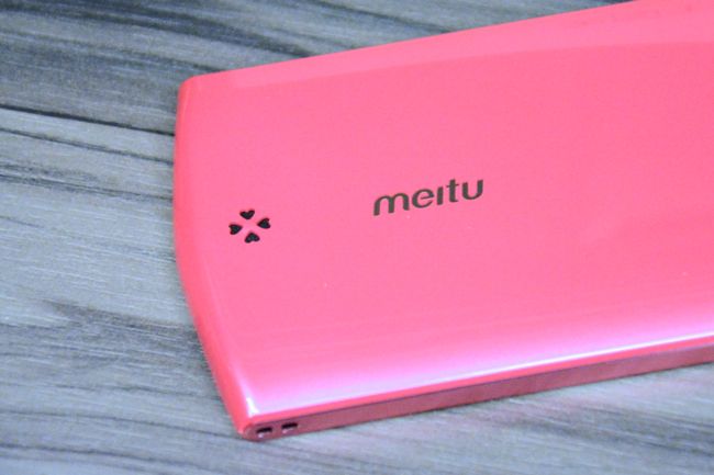 在手機的背後可以看出機身的桃紅色是帶著點珠光閃亮設計,除了有著 meitu 字樣外,喇叭部分還用著愛心幸運草設計,讓這小細節都很有著女孩浪漫情懷。