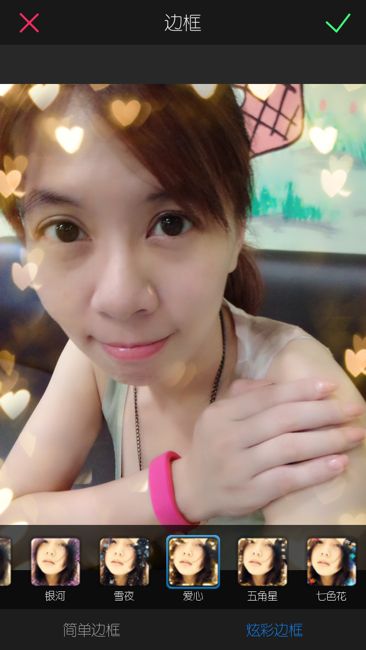 除了直接拍照以外,在拍好後也能透過內建的智能優化(包括了濾鏡、馬賽克、邊框、文字等)以及進階美顏功能來調整。