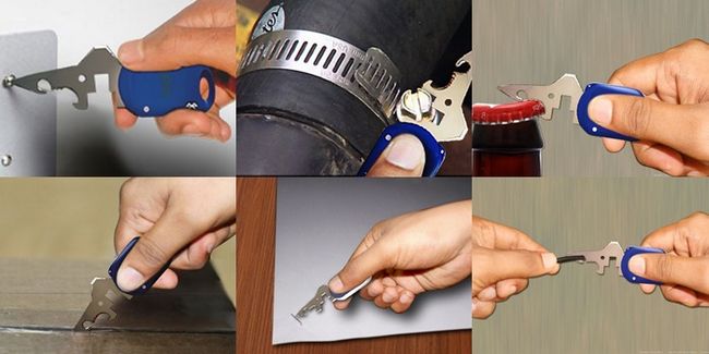 工具功能有:螺絲刀、扳手、開瓶器、拆信刀、切紙機、剝線鉗 、繩鋸、起釘器、竟然連抓癢都可以!