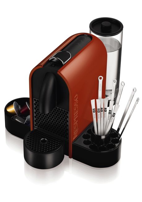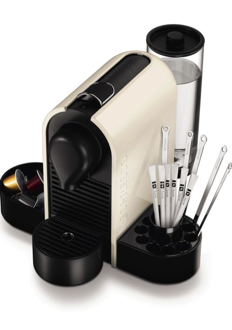 簡約且具設計感的U咖啡機,共有三色: 米白,亮黑與UMAT紅色,光滑觸感與俐落曲線、和機身側邊鐫刻的Nespresso品牌名稱,表彰父親專屬的非凡品味。