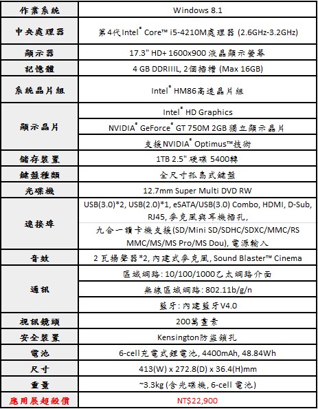 技嘉17吋筆電Q2756搭載第4代Intel® Core™高階處理器、NVIDIA® GeForce® GT 750M獨立顯示晶片,內建光碟機、配備Sound Blaster™ Cinema音質優化技術,為您打造個人專屬環繞劇院,締造精采絕倫的影音震撼!技嘉Q2756適合小資族日常上課、工作需求,更提供完整的影音娛樂享受,應用展必Buy超殺價只要$22,900,超值好物不能錯過!
