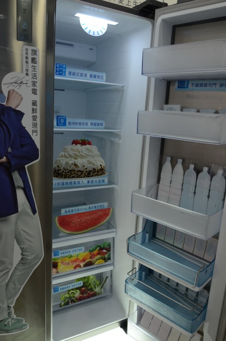 藏鮮愛現門這冰箱不只在省電、空間與冷度上具有非常優異的表現外,在靈活愛現門上是非常具有突破的設計,並且可智慧調節溫度,讓所有食物得到該有的保鮮。具有質感的外觀設計,與半強迫的歸類擺放,讓冰箱不只外面漂亮,還讓打開冰箱後也能整整齊齊,放在客廳或是開放式的餐廳中,除了增添品味外,更重要的是打開冰箱愛現門的方便,讓客人來到家中除了可讓他們自行打開冰箱當成自己家也不怕外,還可讓他們驚訝這冰箱的特異功能,這也是實用外的另一個小虛榮。