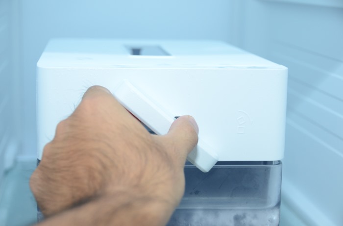 製冰功能使用旋轉式製冰盒,方便製冰外,因為製冰盒是可以任意移動的,如果冬天比較不需要製冰時,可以收納到櫥櫃中,不會浪費冰箱空間,讓冰箱可更彈性應用。
