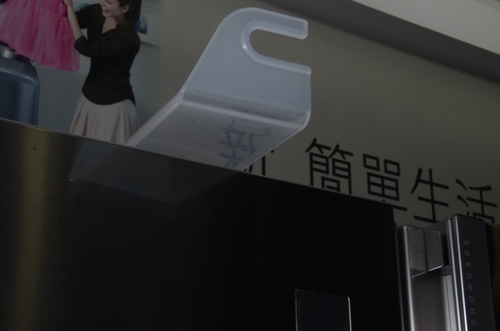 當要放置大瓶的飲料罐時,只要將隔板拿起來就可以。但拿起來的隔板要放到哪裡去呢?正常來說都會直接往冰箱上面丟,所以上方常常有很久沒用的製冰盒、隔板...久了後也忘記他的存在。