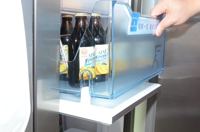 靈活愛現門將冷藏室分為兩層,一為陳列架設計,另外就是原本冰箱的超大冷藏空間。