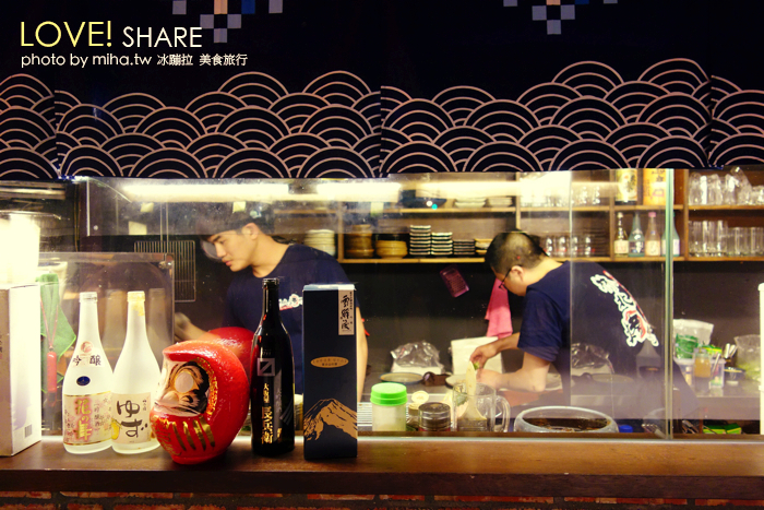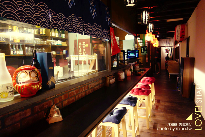 吧台上還放著風乾的一夜乾,還有很多是老闆自己從日本帶回來的酒,很多都是限定清酒耶!可惜我不懂清酒,但光看就很滿足,超多的!!!!!