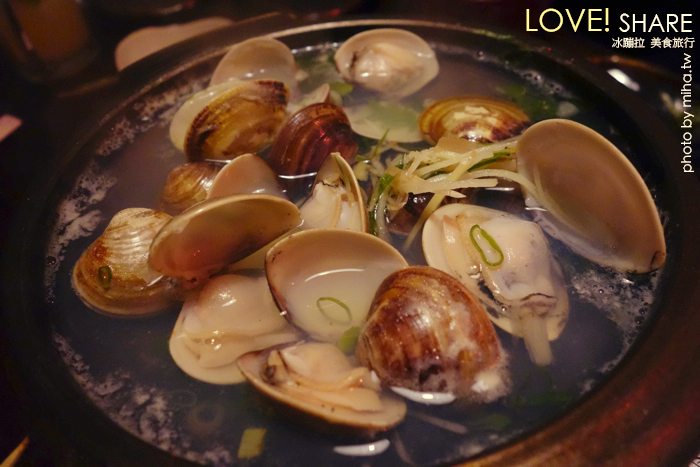 它把比十元硬幣還大的新鮮大蛤蜊放在斟滿清酒的沙鍋,然後直接在你面前煮到滾,還會直接在清酒上點火,讓你直擊這拉風的畫面,每吃必受眾人注目實在很爽,清酒經過這樣煮跟燒後酒精已經都揮發了,剩下就都是清酒的甜,還有蛤蜊大又鮮的美味,我實在太愛這道菜,清酒加蛤蜊怎麼可以變的這麼鮮甜,請切記吃光後剩下的湯通通可以喝,那是精華不喝你終身遺憾。