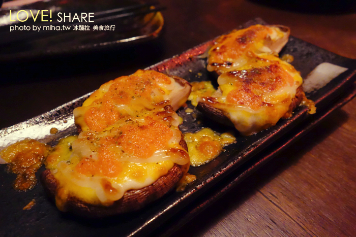 焗烤明太子香菇($100/份),終於在我熱愛的香菇這我醒了,香菇大朵烤的多汁,上頭焗烤金黃加上明太子醬超級美味。