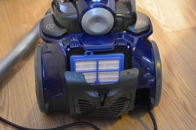 原來 UltraFlex 頂級集塵盒吸塵器在濾網部分可以看見擁有 HEPA 12 級濾網字樣,代表這濾網能夠有效過濾 99.99% 以上灰塵粒子,鎖住小至 0.3 微米的微塵與塵蟎,讓排出的空氣絕對乾淨。