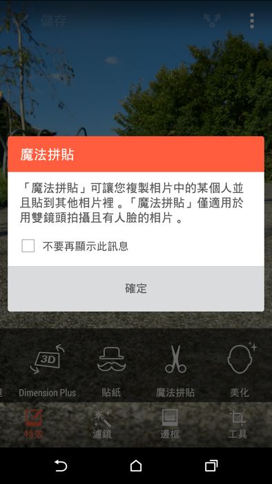 增加了 Duo Camera 也就表示 Butterfly 2 與 M8 相同,可以透過其中的距離偵測拍照來為照片做出變化,不論是可以隨時調整對焦位置的 ” UFocus”、突顯主題的”前景突顯”、下起六月雪的”魔法幻境”、隨著角度視線不同的 “3D 特效”、或是可以自己亂入的”魔法拼貼”,都能因為加入了 Duo Camera 後讓手上的照片變得更加生動。