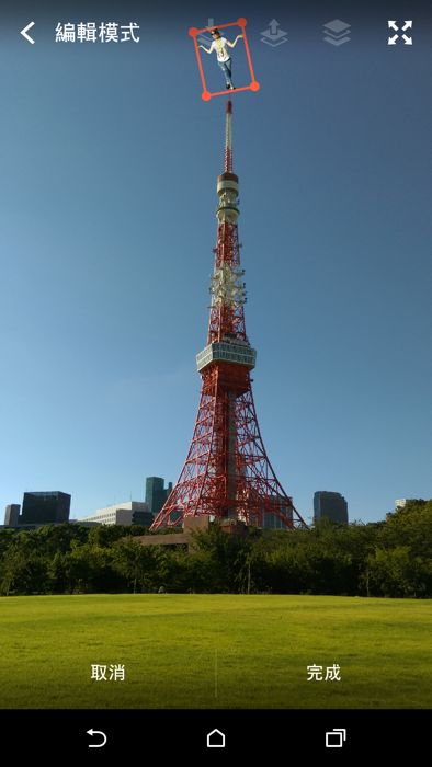 等到挑選好想要裁切的照片後,便能夠透過上方的 “+”、”-“來描繪邊,等到描好就能選想要亂入的背景來擺放囉!