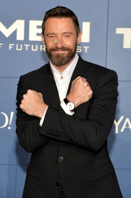 休傑克曼(Hugh Jackman)出席「X戰警:未來昔日」紐約首映,以金鋼狼手勢得意秀出手上的萬寶龍Meisterstück Heritage大師傑作傳承系列玫瑰金萬年曆腕錶。