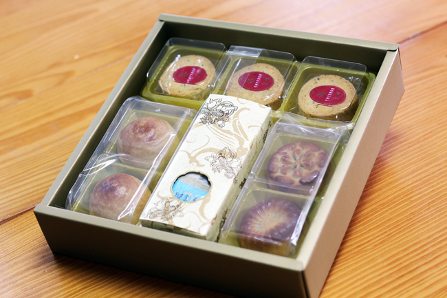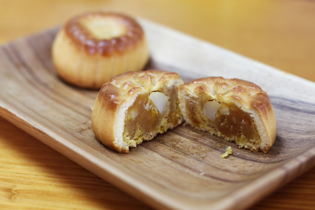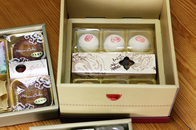 第一層是舒服的港式大月餅(包括干貝蟹黃和鳳梨椰果)