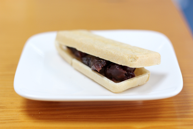 紅豆摩那卡的餡料還不是一般的紅豆泥而已,可以吃到一整顆的紅豆唷!