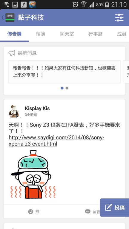 當然除了加入點子科技BAND外,大家也可自己組團來互相聯絡感情,這一部分大家可以參考恰爾斯的圖文介紹,看看BAND還可以怎麼玩!