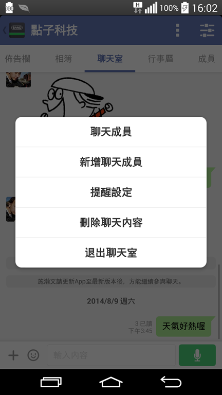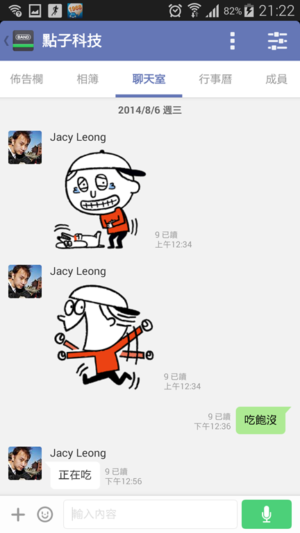 聊天室的目的與佈告欄很不一樣,佈告欄是以主題式的討論為主,而聊天室則是大家亂哈拉的地方,早上起床問聲早安,肚子餓了問一下去哪裡吃東西,讓大家可以盡情的聯絡感情。聊天室與佈告欄的回覆方式一樣,可以用文字、語音、圖片或是貼圖來進行聊天,非常有趣。