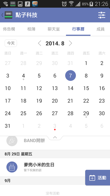 當然如果成員有開放生日資料,大家的生日也會在上面出現,就像是我們成員之一的科技達人麥兜小米在8/29生日,在行事曆上就會出現。