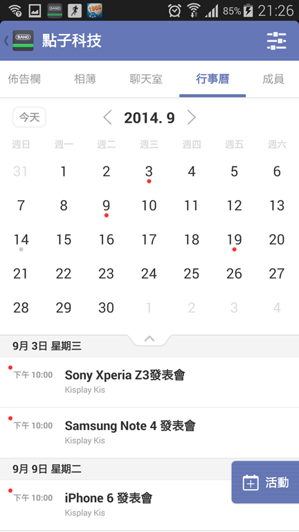 點子科技BAND中有許多功能,例如佈告欄、相簿、聊天室、行事曆…等功能,讓討論區更為完整。在開始介紹功能前,很多朋友一定非常疑惑,為什麼不直接開FaceBook粉絲團就好了?其實在粉絲團中,所有訊息都是單向由粉絲團管理員發出,讓加入的朋友跟隨,但科技產品又多又廣,很多議題都是由大家一起討論才會發現問題,所以能夠讓所有朋友直接開啟討論共同編輯,這是最好不過的交流機會。
